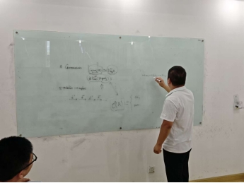 报告伊始,赵教授系统梳理了正合三角范畴的相关理论的研究进展和前沿课题,重点介绍了正合三角范畴的Grothendieck单子的概念。他结合自身研究成果深入浅出地阐述了正合三角范畴的Grothendieck单子的重要性质,并给出了相应的应用。在报告的最后部分,赵教授分享了自己在该领域的最新研究思路和阶段性成果,为在场师生提供了宝贵的学术参考。