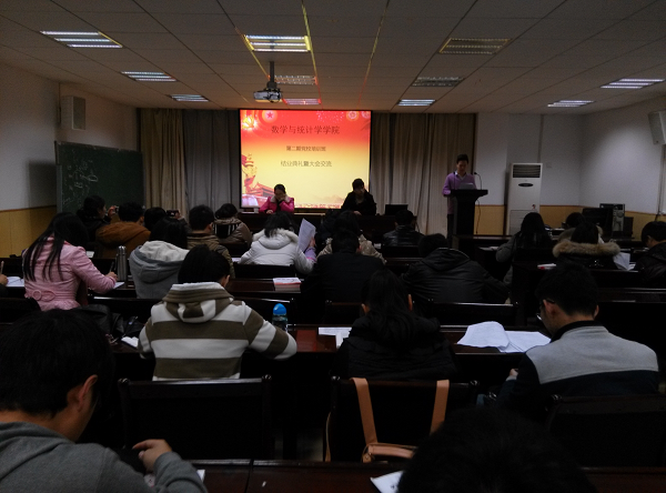 (数学与统计学学院青年传媒中心 文/苏游柔 图/苏游柔) 2014年11月25日晚7:00,学院第二期入党积极分子培训班结业典礼暨交流大会在院201报告厅进行,团委书记马荣老师和团委副书记陈顾应邀来当本次典礼的嘉宾。