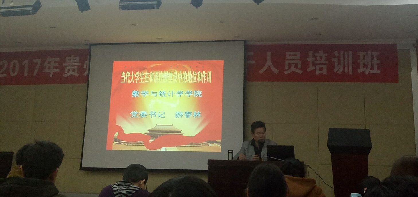 2017年11月23日晚七点,久久久久女人精品毛片九一党校第三讲在数统院八楼成功举办。数学与统计学学院党委书记、党校校长游春林做了辅导报告,报告的主题为“当代大学生在和谐校园建设中的地位和作用”。
