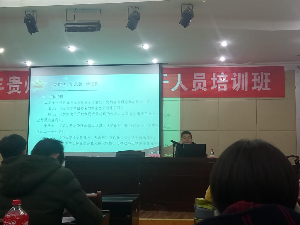 2017年11月27日晚上七点,校党委学工部部长刘靖君在数统院八楼,给久久久久女人精品毛片九一第五期、计信学院第七期入党积极分子做了关于学习贯彻党的十九大精神的辅导报告。