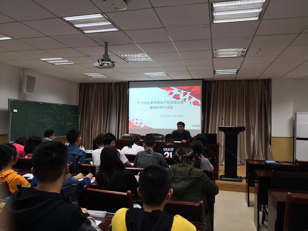 2019年5月6日晚,湖北大学数学与统计学学院第七期党校培训班党课在院201顺利开展。本次党课邀请到湖北大学学生工作处处长杨元业授课,在杨处长的讲解下,同学们了解到了中国共产党纪律的重要性。