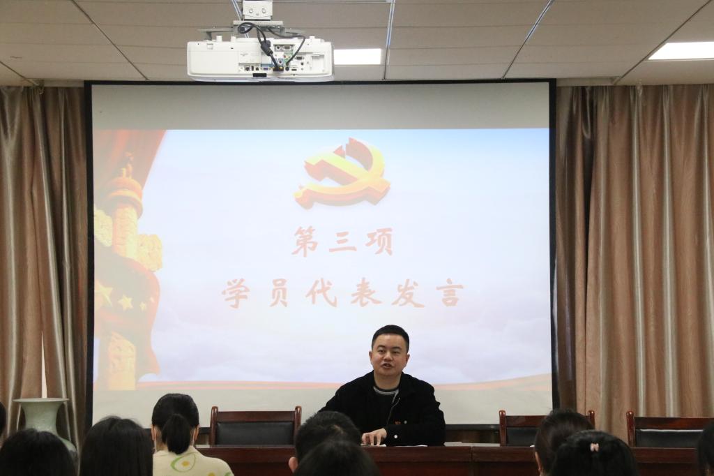 开班仪式最后,学院组织员周杰发表讲话,希望同学们能以此次入党积极分子的理论学习为契机,不管是在学习生活中,还是在个人思想作风上,都能严格要求自己,踏实努力,积极进取,不断挑战自我、追求卓越,最后预祝同学们能够在此次党校学习中取得优异的成绩,顺利结业。