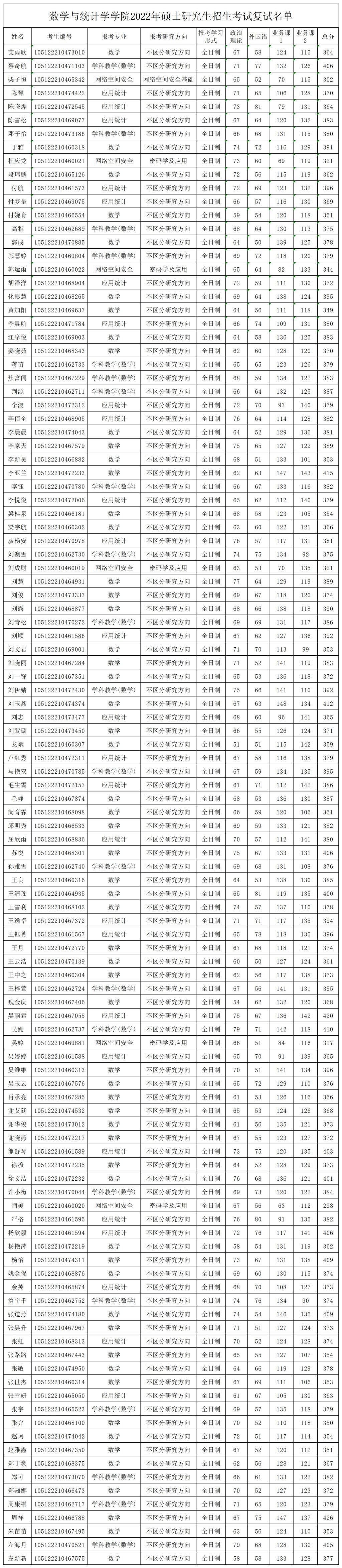 湖北大学数学与统计学学院2022年硕士研究生复试名单(一志愿)