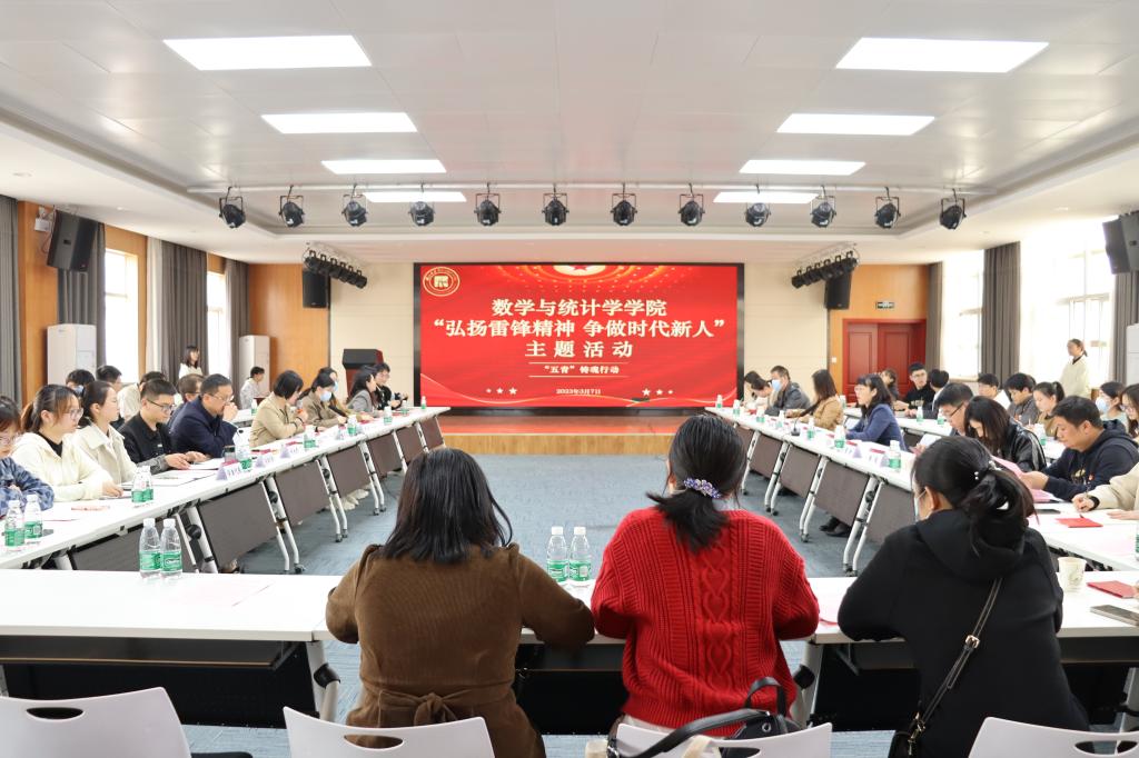 为贯彻落实习近平总书记对深入开展学雷锋活动做出的重要指示精神,引导激励全院师生进一步树立崇高理想追求,2023年3月7日下午,数学与统计学学院“五青”铸魂行动三月主题活动在学院八楼报告厅召开。本次活动以“弘扬雷锋精神 争做时代新人”为主题,校党委宣传部常务副部长何顺进、学工部部长甘珣、学生发展与就业指导中心主任肖志华、校团委书记张丽娜以及学生工作部(处)、武装部、校团委联合党支部的全体老师应邀出席会议,学院领导班子成员和师生代表共同参加,会议由学院党委书记周霞主持。