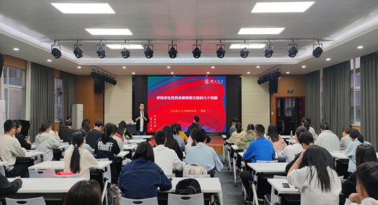 随后,马克思主义学院党委秘书、组织员,学工办主任邹浩以“高校学生党员发展需要注意的几个问题”为题,为全体学员作第一次专题辅导报告。他以“程序规范吗?”“材料规范吗?”两个问题为出发点,从申请入党、入党积极分子培养考察、发展对象确定考察、预备党员接收到预备党员教育考察转正等五个阶段十四份党员材料,详细地讲解了发展党员工作的流程和发展过程中可能会遇到的相关问题。最后,他告诫同学们要认真对待党员材料,严格遵守党员发展流程。全体学员认真聆听,纷纷表示课后将进一步加强对党的理论和党务知识的学习,加深对发展党员工作的了解,切实做好“程序上入党”的各个环节。