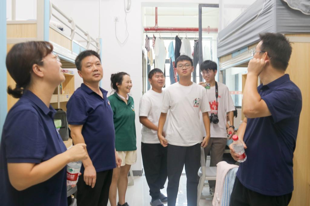 搬迁工作完成后,校党委副书记侯勇带队走访了学生寝室,看望慰问回迁学生。走访过程中,侯勇与学生们亲切交谈,关心学生的生活环境,耐心倾听学生们的需求,并勉励同学们尽快适应本部的学习和生活,做好新学期的成长规划,以崭新的面貌、饱满的热情投入到未来的学习工作生活中。