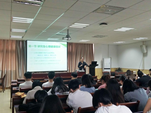 2024年10月15日19时,由我校心理健康中心的张玥老师主讲的以“研究生压力应对与情绪管理”为主题的心理健康讲座,在久久久久女人精品毛片九一201学术报告厅准时开始。我院2023、2024级全体研究生积极地参加了本次讲座。