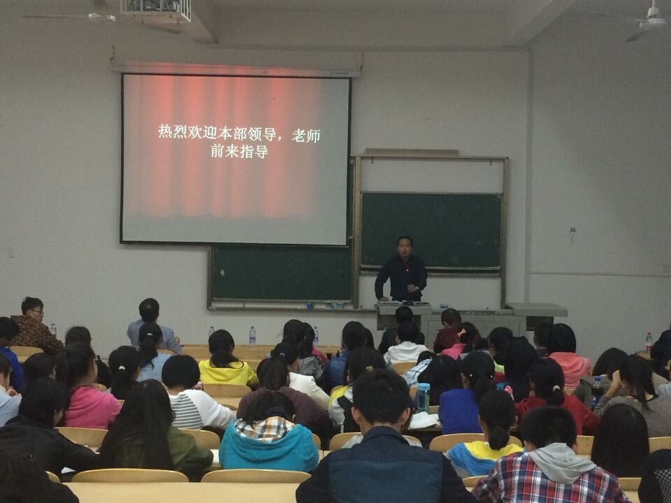 金秋十月,丹桂飘香。10月13日晚,数学与统计学学院2014级本科新生入学专业教育在通识教育学院顺利召开,院领导曾祥勇、陆伟、黄朝炎、付应雄、向妮、张军,专任教师代表及优秀高年级学生代表一行14人参加了此次活动。