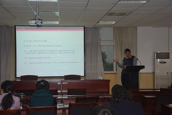 11月27日上午,美国加州大学欧文分校万大庆教授在学院201报告厅为相关专业教师和研究生作了一场题为《How many values a polynomial misses?》的学术报告。