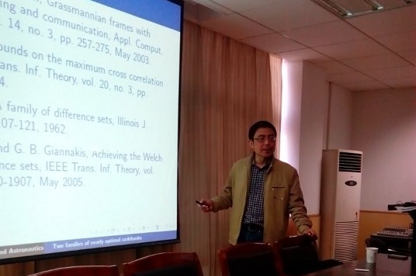 2015年3月25日下午,南京航空航天大学理学院岳勤教授应邀来我院讲学,为学院相关专业研究生做了一场题为《Two families of nearly optimal codebooks》的学术报告。
