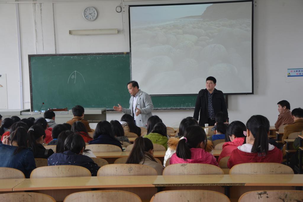 2015年4月8日下午,学院党委副书记陆伟带领14级班主任付应雄老师、马荣老师及优秀学生代表黄浩一同前往阳逻校区通识教育学院,面向2014级学生开展学业指导和思想交流活动。