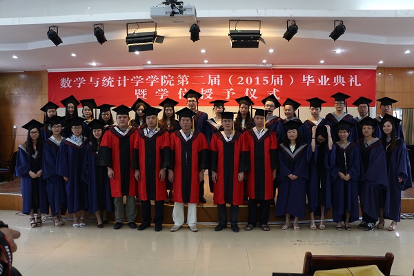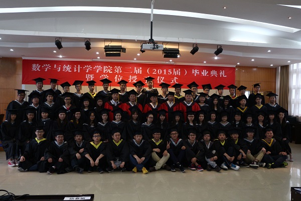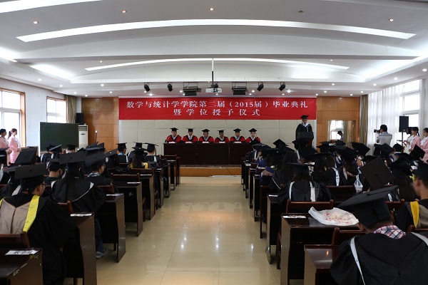 6月17日上午,湖北大学数学与统计学学院2015届毕业典礼暨学位授予仪式在院八楼隆重举行。院领导游春林、曾祥勇、黄朝炎、付应雄、向妮出席毕业典礼,院党委副书记陆伟主持毕业典礼,博士毕业生、硕士毕业生及本科毕业生参加典礼,167名毕业生圆满完成学业,踏上新的人生征程。