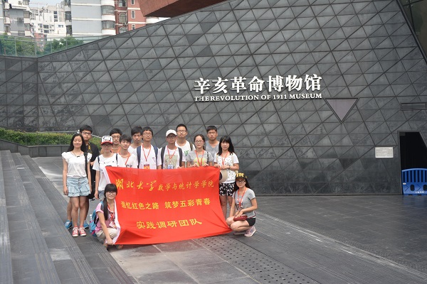 6月19日,湖北大学数学与统计学学院“追忆红色之路,筑梦五彩青春”实践调研团队全体成员来到武汉,在这里进行最后一站的调研活动。此前,实践调研团队共分六个小组分赴江西、长沙、韶山、河南、南京、重庆等六地进行实践调研。六个小组利用专业优势,通过发放问卷最终形成调研报告,并制作视频材料,以此来弘扬革命精神,砥砺党性,为培养又红又专的人才搭建平台。