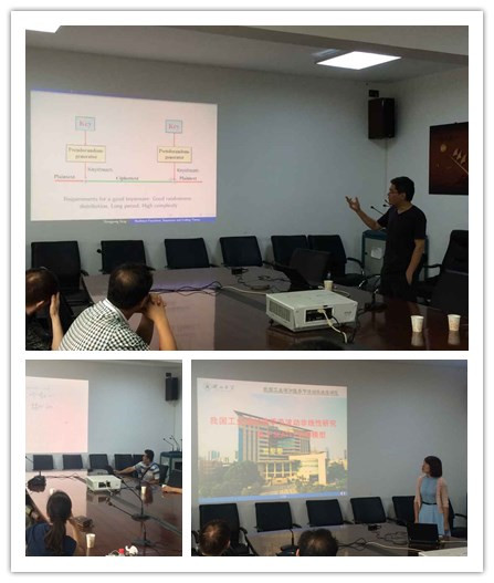 会议首先由湖北汽车工业学院理学院副院长、数学系77级校友喻方元教授致欢迎辞。我院曾祥勇教授、彭志刚教授、向妮副教授和危黎黎博士分别围绕会议主题,做了《Nonlinear functions sequences and coding theory》、《单叶函数论的研究内容及尚待解决的问题》、《Gradient estimates for oblique boundary value problem of monge-ampere type equations》和《我国工业增加值季节波动非线性研究——基于Seatv-Star模型》四场精彩的学术报告。报告会后,参会人员还进行自由讨论,充分的交流彼此的科研心得。