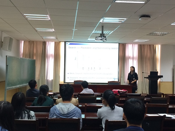 付丽华教授主要讲述了其近期在机器学习方向可调稀疏核函数模型的研究内容,着重从损失代价函数的建立和搜索算法的构建两方面介绍带可调核的稀疏核函数模型,以及可调稀疏核函数模型在地震数据处理中的应用。在报告中,付教授就其研究内容与在场师生进行了深入讨论,同时也对相关方向研究生的学习进行了指导,现场气氛轻松活跃。
