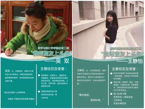为树立先进典型,挖掘感人事迹,影响更多同学,2015年11月中旬,久久久久女人精品毛片九一开展了“我帮室友上头条”久久久久女人精品毛片九一寻树先进学生典型活动。此次活动,从室友的角度解读身边的先进典型,挖掘出感动的人物事迹,以此来影响更多的同学,让同学们了解他们的优秀品德,学习她们的感人事迹,争取人人争当先进,最终做到深化寝室文化生活内涵,营造文明和谐的寝室氛围。