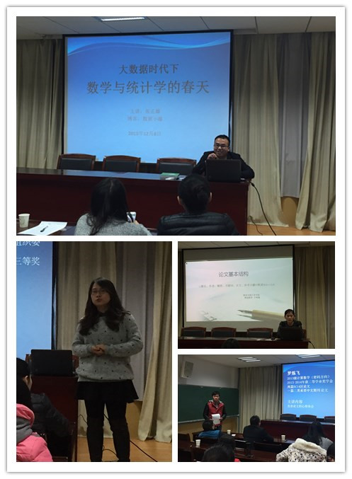 为加强我院研究生学术交流、激发全院研究生科研创新积极性、增强全院研究生的创新能力。12月8日晚,学院研究生会在院201报告厅举办了一场以“加强学术交流,玩转数学建模”为主题的学术沙龙,学院党委副书记陆伟、院长助理张莎莎及全体研究生参加了此次活动。