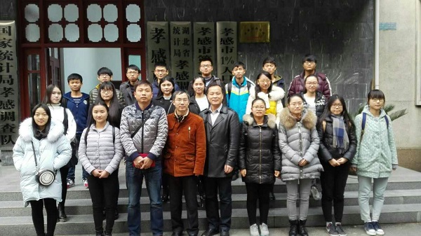 12月23日,在数学与统计学学院党委书记游春林、副院长付应雄的带领下,学院2015级应用统计学专业20名学生前往孝感统计局开展了为期四天的见习活动。孝感统计局负责人胡启明对学院学生的到来表示热烈的欢迎。