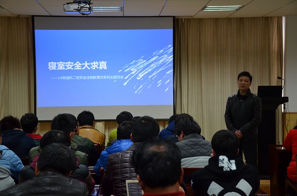 3月16日下午,13级信科在院201报告厅开展了“安全教育”主题班会。院党委副书记兼班主任陆伟参加了此次班会。陆书记通过列举大学生违法乱纪以及火灾、食品、交通等各种安全事故的实际案例详细的向同学们讲述了日常生活中的交通法则法规,乘车出行安全及注意事项。火灾的预防安全,逃生自救方法,以及生活中应该时刻警惕的防盗、防骗、防抢等一系列安全知识。让同学们学到了很多安全知识,并认识到在日常生活中防患于未然的重要性和生命的脆弱与可贵,及时为同学们敲醒了安全的警钟!