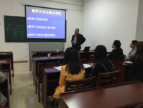 3月30号下午,我院退休教师严启平为学科教学的研究生作了一场《数学方法论的相关研究》的报告。