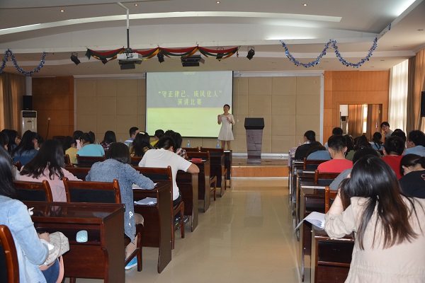 4月15日下午,数学与统计学学院“守正律己、成风化人”演讲比赛在院806报告厅顺利举行,学工办老师周杰和马荣参加了此次活动。