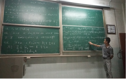 在报告中,王小华老师首先对度量空间上的拓扑维数给出了两种定义,随后引入了度量空间上拓扑豪斯道夫维数的研究,定义了其上的拓扑豪斯道夫维数,并推导出了可分的度量空间上的拓扑豪斯道夫维数及其性质,并证明了可分的度量空间上拓扑维数、拓扑豪斯道夫维数、豪斯道夫维数之间的大小关系,最后对乘积空间上拓扑豪斯道夫维数进行了讲解,并提出了Sierpinski地毯、von Koch curve曲线、Kakeya集上拓扑豪斯道夫维数的研究。在报告会的尾声,大家还和王小华老师交流了一些问题。此次报告在热烈的讨论中结束,在场师生都有很大的收获。