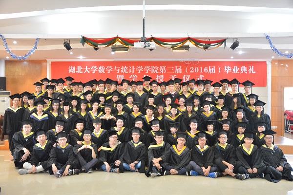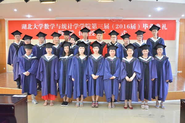 6月22日上午,湖北大学数学与统计学学院2016届毕业典礼暨学位授予仪式在院八楼隆重举行。院领导游春林、曾祥勇、付应雄出席毕业典礼,院党委副书记陆伟主持毕业典礼,博士毕业生、硕士毕业生及本科毕业生参加典礼,217名毕业生圆满完成学业,踏上新的人生征程。