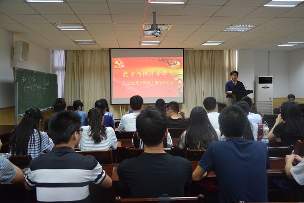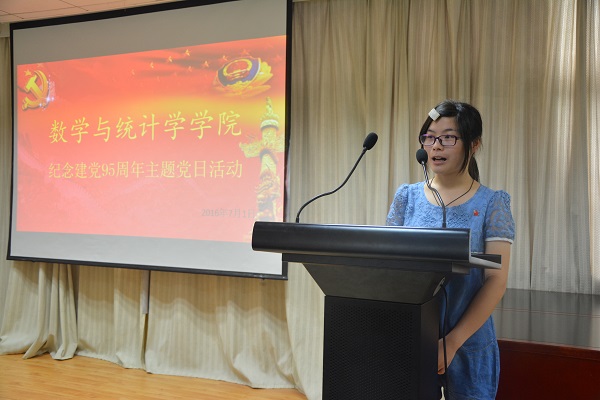 活动在国歌声中开始,游书记发表致辞,他表示,1921年7月23日,中国共产党第一次全国代表大会在上海举行。95年来,中国共产党由小到大,由弱变强,领导中国人民冲破重重难关,夺取了革命斗争和经济建设的一个又一个胜利。我们应牢记中国共产党的光辉历史,以一个党员的标准严格要求自己,希望同学们加强责任意识,发挥先锋模范作用。学生党员代表范馨同学也结合自己的学习和生活交流了自己的思想和体会。