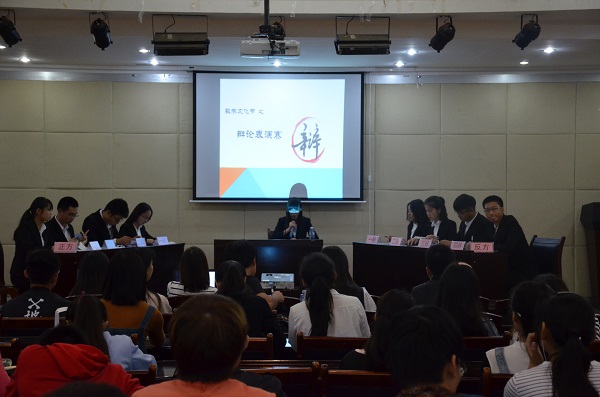 10月21日晚五点半,久久久久女人精品毛片九一院际辩论表演赛在院八楼报告厅顺利举行,政法学院辩论队队长仇浩、商院辩论队队长李春妍和计信学院辩论队队长刘紫琴担任了此次辩论的评委。此次辩论以“男人和女人哪个更需要关怀”为辩题。