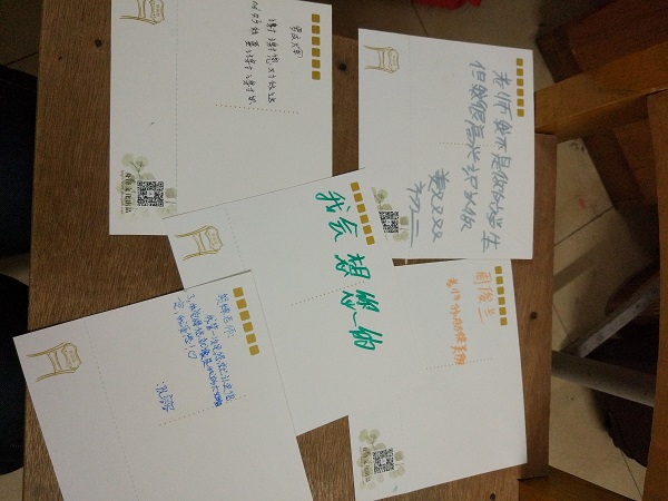 志协主席罗成辉和志协三名干事在下午一点钟抵达了目的地——德勤希望小学。志愿者们说,“还未进校门,便已经感受到了孩子们的热情”。当天下午的活动安排是给孩子们发明信片,让孩子们写上自己想对志愿者们说的话。这次活动的顺利开展,更加增进了志愿者们与孩子们的感情,也使最后的道别尤为依依不舍。