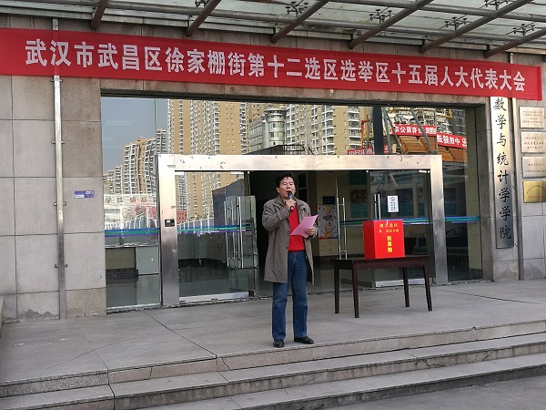 11月11日是武昌区第十五届人民代表大会代表选举日。武昌区人民代表大会代表换届进入选举投票阶段。学院组织了本院的714名选民参加了武昌区徐家棚街第十二选区的投票,从3名候选人中拟选举产生武昌区人大代表。