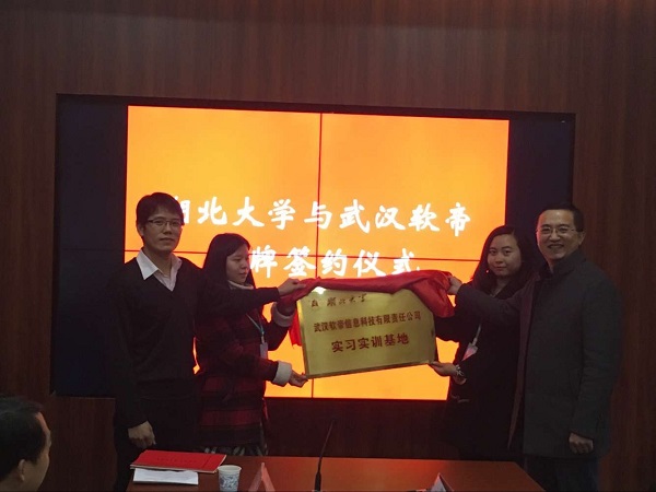 11月24日下午,“湖北大学---武汉软帝信息科技有限公司校级实习基地”签约、揭牌仪式顺利举行。校教务处、久久久久女人精品毛片九一负责人及指导教师代表、软帝集团董事长及相关领导出席仪式。
