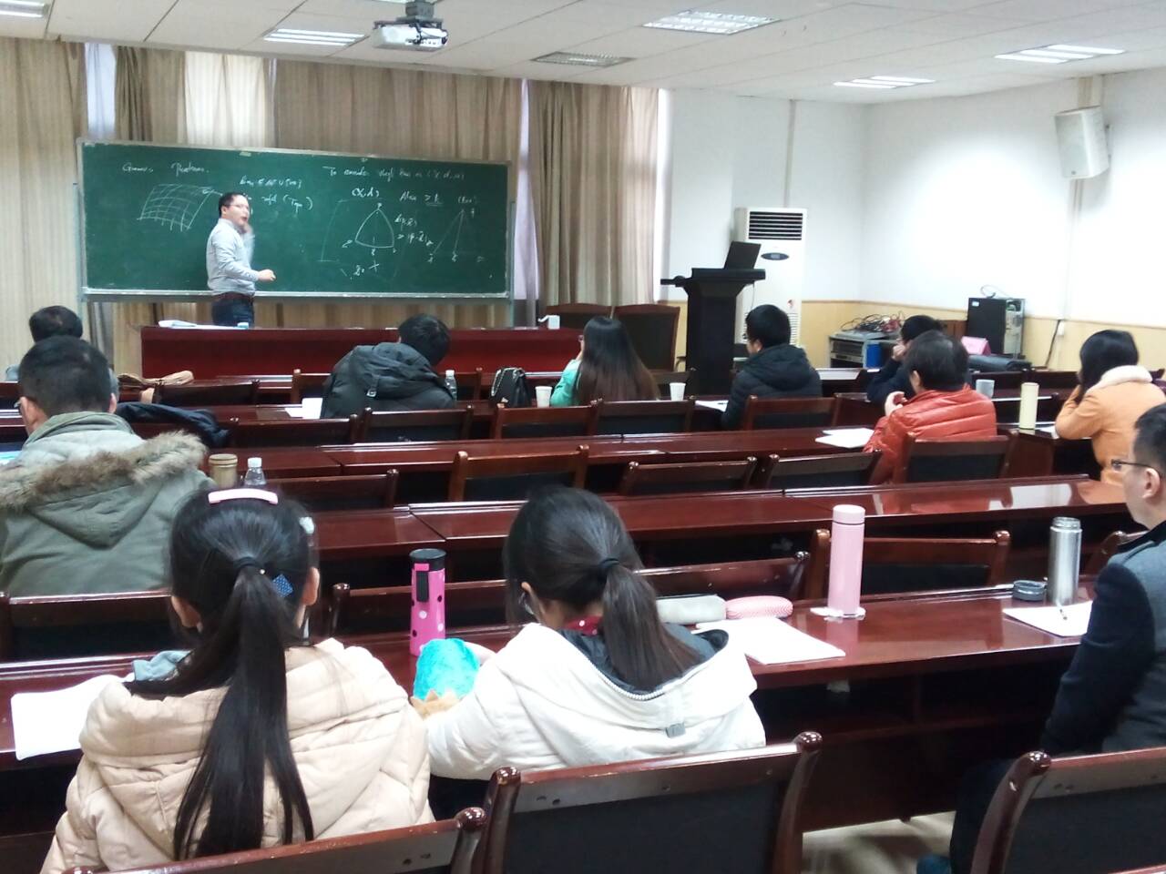 在报告中,张会春教授首先引入了测度空间问题,并举出了一些典型的几何案例。接着,张会春教授又为在座师生详细讲解了度量测度空间上的特征值问题,并利用画图绘声绘色地描述几何空间。最后,张会春教授介绍了测度在几何空间上的一些应用,并分享了他研究的兴趣方向。
