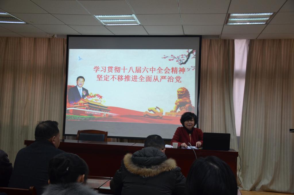 杨鲜兰教授的报告以《学习贯彻十八届六中全会精神坚定不移推进全面从严治党》为题。从十八届六中全会的主要精神和重要成就出发,向大家解读了十八届六中全会的主要成果,十八届六中全会围绕一个主题、报告了一年的工作、审议通过了两部法规、审议通过一个决议、确定了一个核心。她从“三个需要”诠释十八届六中全会的意义:完善“四个全面”战略布局的全面需要、深化全面从严治党的迫切需要、解决党内突出矛盾和问题的迫切需要。在报告中,她重点解读了《准则》和《条例》的内涵,同时对文件起草的背景、原则以及过程进行详细讲解。