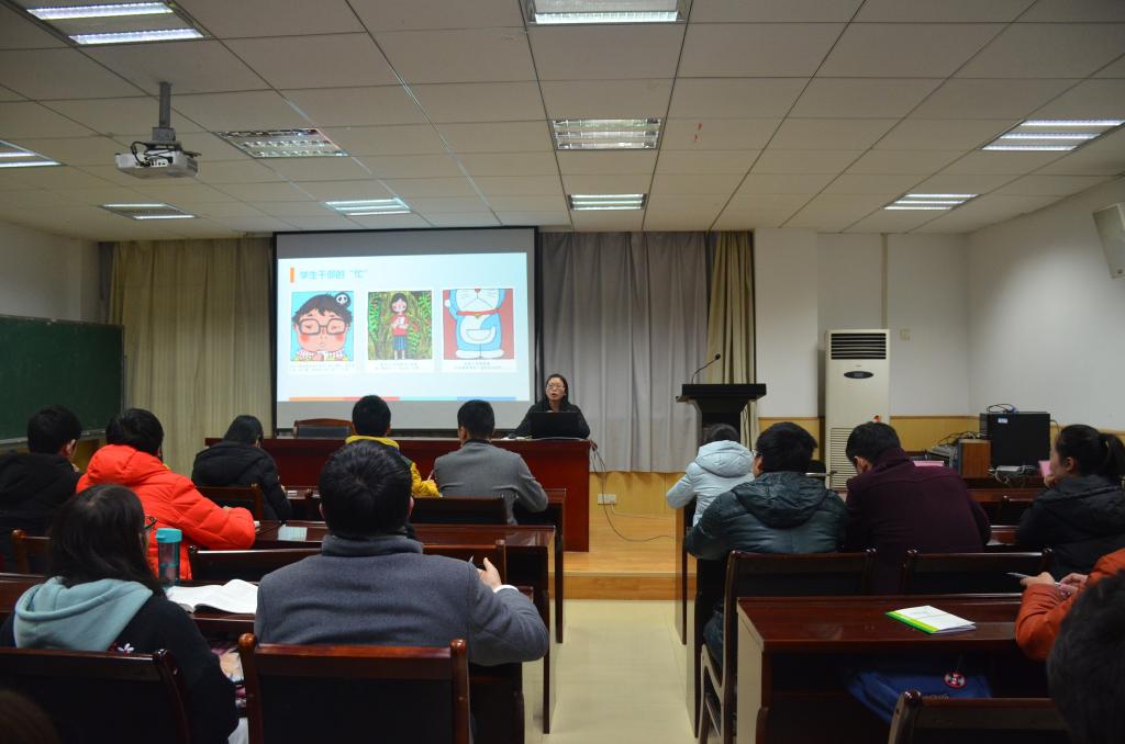 12月8日下午,久久久久女人精品毛片九一学生干部培训班第五讲准时开讲。此次邀请到的是新闻传播学院的团委老师覃红英,此次培训由学联会主席谭沁雨主持。