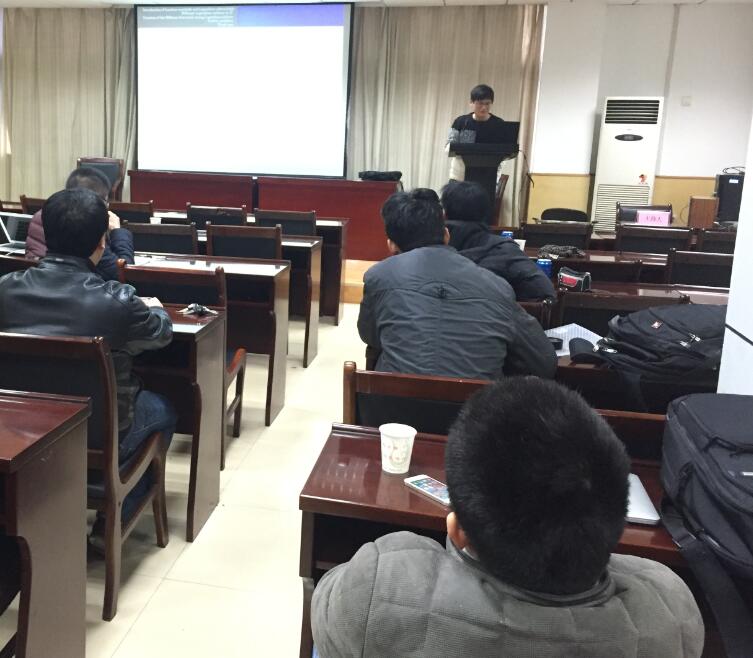 报告中,罗勇老师讲解了Sasakian流形和Legendrian流形的基本概念,介绍了在五维球面中的Willmore Legendrian曲面的相关的理论与研究的成果。他还定义了Willmore泛函的概念,并运用了变分学的理论与研究方法在Legendrian曲面上进行讨论,在此基础上介绍了自己的研究成果。在报告的最后,他还介绍了该领域的一些没有解决和不清楚的问题,并在最后和在场师生进行了热烈的讨论。