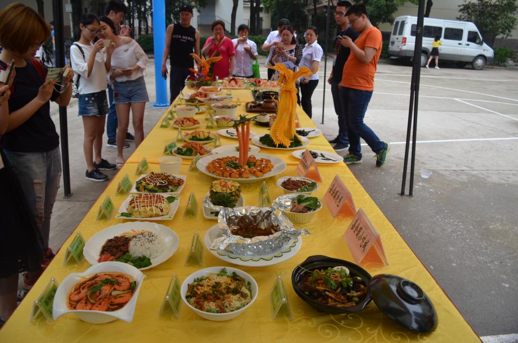 活动伊始,展示台上摆好的已经做好了的菜品,引来不少学生的驻足观看。上面摆着五花八门的菜肴,有各个食堂的特色菜品和各个地区的美食,也有食堂常见的菜色。随着比赛的开始和深入,同学们将更多的注意力放在了选手的做菜过程中,期间不少同学表示要偷学两招自己做着吃。在试吃环节,工作人员抵挡不住同学们的热情分发下去的菜肴没有一分钟就见底了,原本摆了一桌子的食物瞬间被同学们一扫而空,有些同学哭丧着脸跟工作人员说到我连一口都还没有尝。根据色香味等多个方面评价,最后熊孩子队和黑暗料理队搏得评委们的青睐,获得此次活动的桂冠。