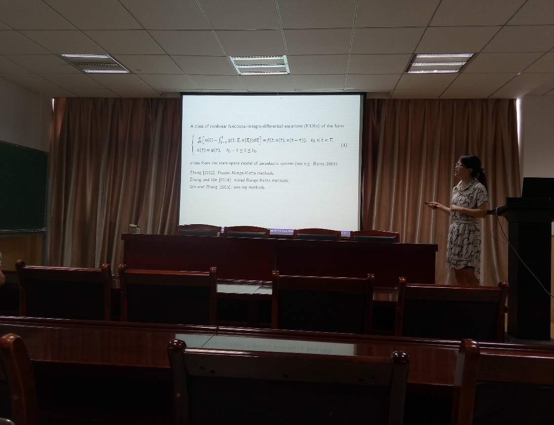 7月5日,华中科技大学覃婷婷副教授来我院做了一场题为《Stable solutions of several numerical methods for a class of nonlinear functional-integro-differential equations》的精彩报告。