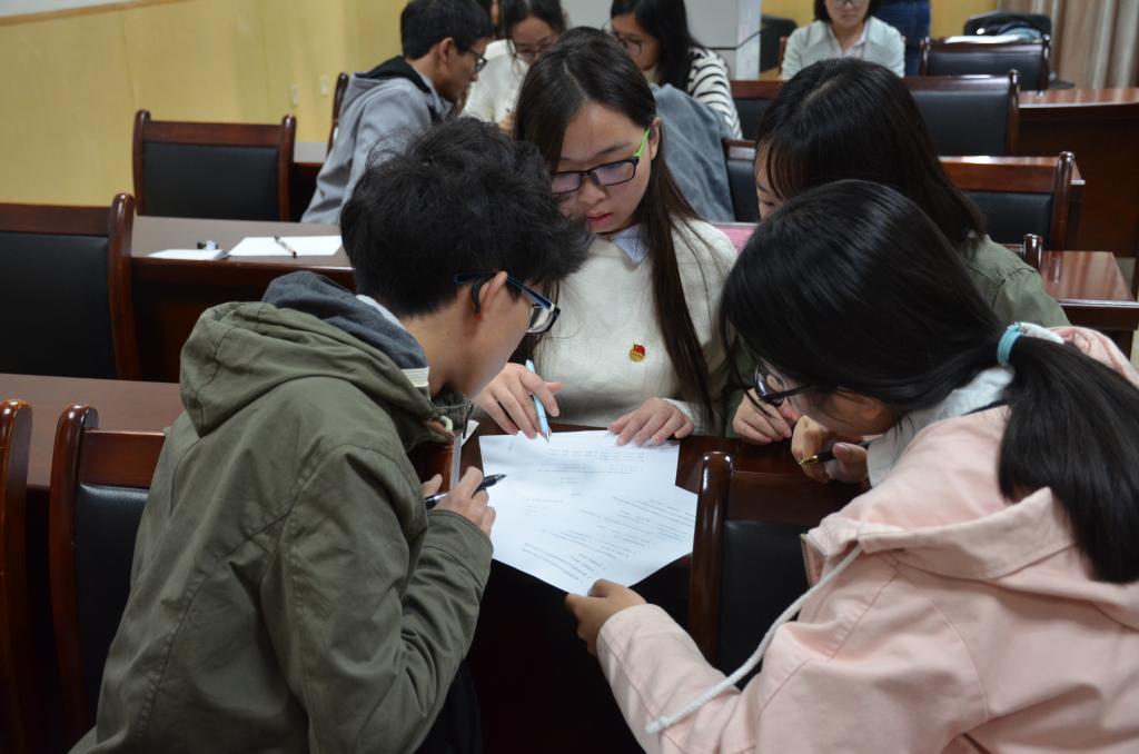 “耶,这个题又做对了!”“第八题错了,原来选B啊。”“淘汰的是第二组,不是第六组。”活动现场,学生们在公布答案和得分时讨论的声音此起彼伏,他们或露出志在必得的神情,或因为答错题而皱眉,积极参与,气氛活跃。周杰表示,“此次活动通过体验式学习的方式,加入压力测试和团队竞争机制助学,团干部们积极参与,氛围活跃,达到了学习的效果。”作为老师,他希望学生学习十九大不仅仅停留在标题和碎片化的知识,更需要系统学习其思想、脉络和精髓。16级信科专业的甘宁是获得冠军的小组的成员,对于此次学习交流会,他谈到,“今天的团日活动是一次非常有意义的团日活动。我想,一个好的团日活动,就是大家从心底里喜欢且愿意参与,又能在相对活跃的环境中学习思考深邃的纲领、政策和思想。”