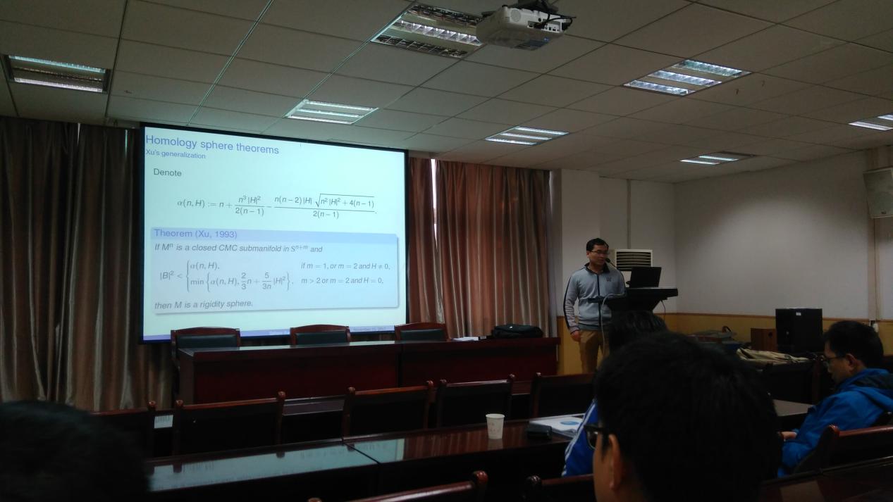 2017年11月15日下午,武汉大学孙俊副教授、孙林林博士来学院讲学。在久久久久女人精品毛片九一201报告厅他们分别为师生作了题目为“On symplectic critical surfaces”和“Sphere theorems”的学术报告。
