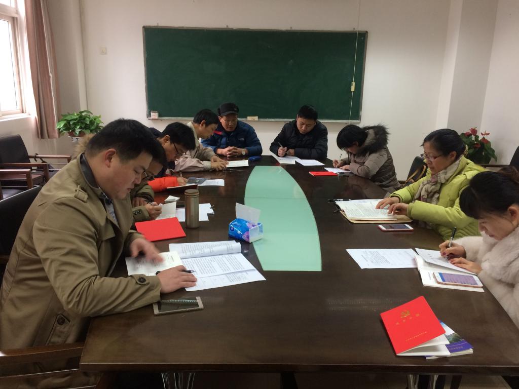 会议由支部书记李胜华主持。首先,全体党员集中学习了党的十九大报告中“八个明确”和“十四个坚持”的相关内容,并重温了党员义务和党的基层组织的基本任务。而后,支部书记对2017年度支部工作进行了简单回顾,支部组织委员危黎黎通报了2017年度支部党费交纳情况。后面是党员个人自评、党员互评、民主测评,最后由院党委副书记陆伟小结会议并对2018年的工作提出指导性建议。