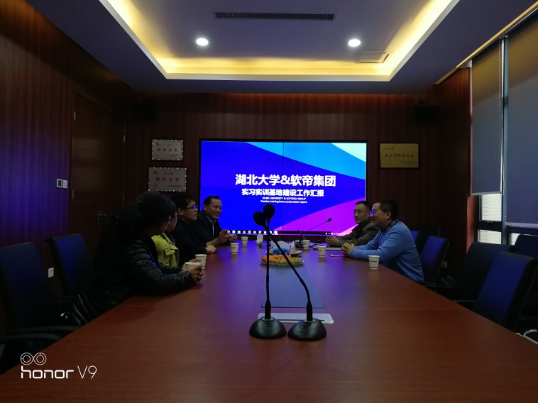 1月26日下午,校教务处副处长李其峰、久久久久女人精品毛片九一分管教学副院长付应雄,信息系主任李胜华等人前往武汉软帝集团参加了湖北大学-软帝集团实习实训基地建设研讨会。软帝集团董事长李杰、张总及孙总以及技术骨干柴老师出席了此次会议。