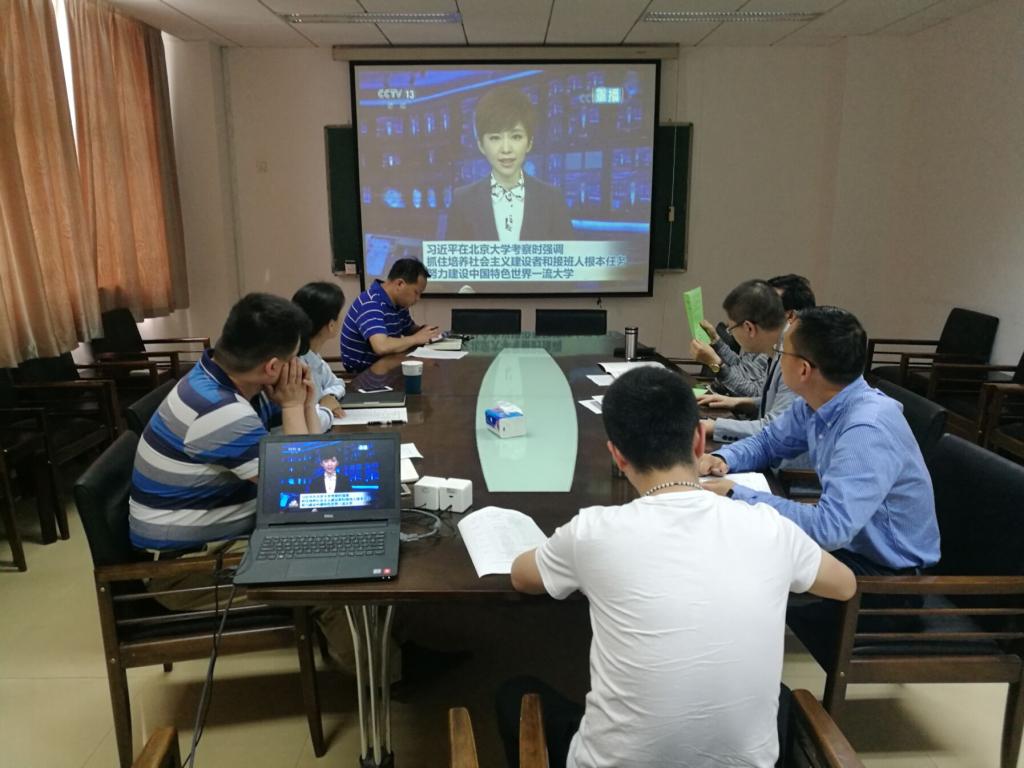 学习中大家首先观看了习近平总书记在北大视察及讲话的相关视频资料,接着大家就总书记在北大讲话中有关高校人才培养的相关内容进行了交流讨论。学习的最后院党委书记游春林做了总结。他说:习近平总书记在北大的讲话实际上对我们高校教育工作者提出了很多要去,也给出了很多指导,大家回去以后要多多学习、领悟,用在日常的教学科研工作中。