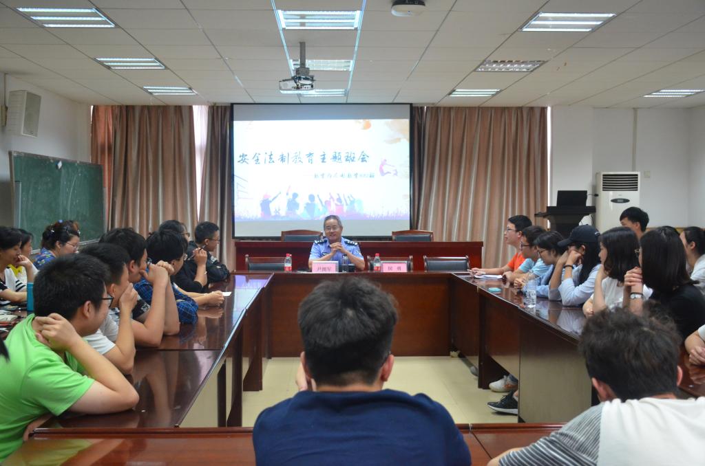 5月9日下午,武汉市公安局治安支队中队长尹拥军警官参加了我院院数学与应用数学专业1602班安全法制主题班会,并为师生作了安全防范知识讲座。校党委副书记侯勇,院党委书记游春林,保卫处长康健,校自育委员会、班主任及学生代表出席了此次班会。