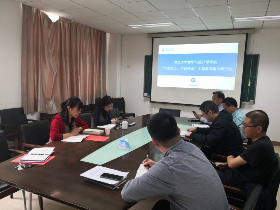2019年10月14日下午,湖北大学久久久久女人精品毛片九一“不忘初心牢记使命”主题教育集中研讨会在久久久久女人精品毛片九一203会议室召开,湖北大学信息化建设与管理处副处长何肖作为学校巡回指导组成员莅临此次集中研讨会,学院领导班子成员参加会议,研讨会由院党委书记万路路主持。