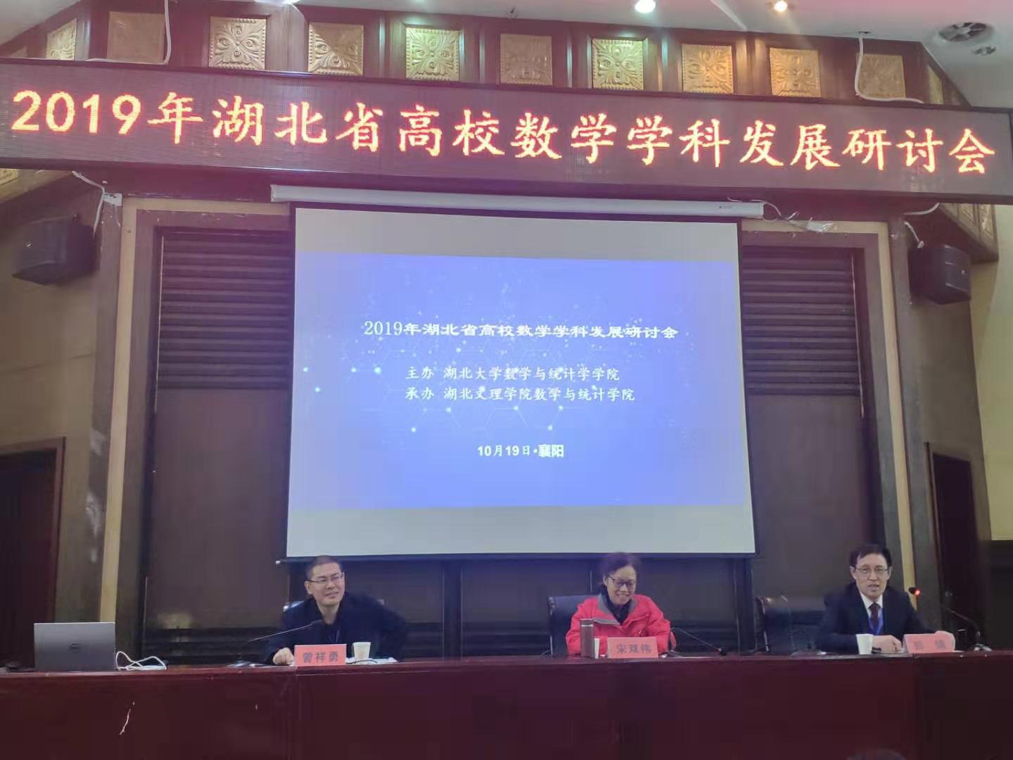 10月18日至20日,由湖北大学数学与统计学学院、应用数学湖北省重点实验室主办,湖北文理学院数学与统计学院承办的2019年湖北省高校数学学科发展研讨会在湖北文理学院举行。此次会议旨在推动湖北省高校数学学科发展,加强数学教育与研究工作者之间的交流,总结近年来数学理论及其应用、数学教育教学的最新研究成果。