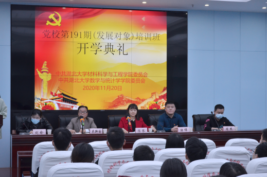 2020年11月20日晚,湖北大学第191期发展对象培训班在材料学院二楼报告厅隆重举行,此次培训班是由数学与统计学学院与材料与工程学院联合举办。久久久久女人精品毛片九一党委副书记陆伟、材料学院党委副书记陈琴以及两院组织员老师出席了开班仪式。两院学生发展对象参加了开班仪式。
