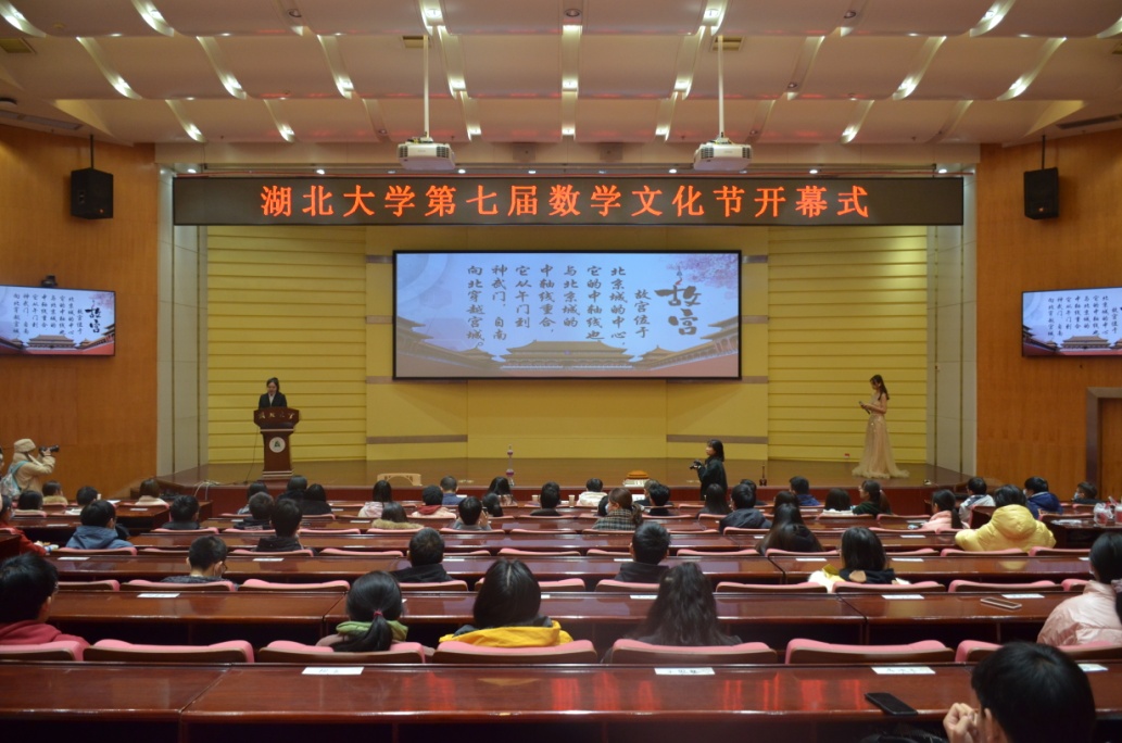 2020年11月25日下午,湖北大学第七届数学文化节在会议中心思睿厅开幕,此次数学文化节的主题是“叹朱楼翠阁之精妙赏虚实曲直之绝伦”。校党委宣传部、研究生工作部、学生工作部、团委等职能部门负责人,久久久久女人精品毛片九一全体领导及部分师生代表参加了开幕式。