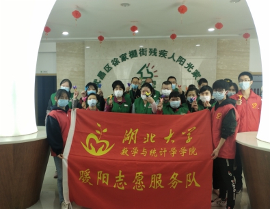 暖阳志愿服务队建于2012年,服务队以处于就业年龄段的不在业且有托养服务需求的智力、精神和丧失生活能力的重度残疾人群体为专业服务对象。8年来,先后前往基地120余次,累计志愿服务超过500工时。学院暖阳志愿服务队获得湖北大学2016年度“优秀志愿者”称号,也分别获得紫阳街残疾人联合会2013年度“优秀助残志愿团队”、2014年度“先进助残志愿团队”、2015年度“最佳助残志愿服务团队”、2016年度“最佳助残志愿服务团队”、2017年度“最佳助残志愿服务团队”和2018年度“最佳助残志愿服务团队”。