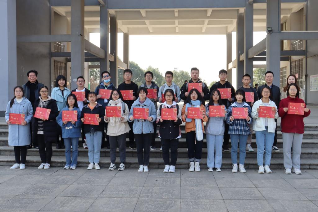 活动现场,团委书记周杰宣读了《关于颁发方冰等20名2021级本科生“纪念忠仁”助学金的决定》。随后,参会领导老师为在场的学生颁发了助学金纪念卡。红色纪念卡上的短短几行寄语,包含了学校和老师对他们殷切的期盼。
